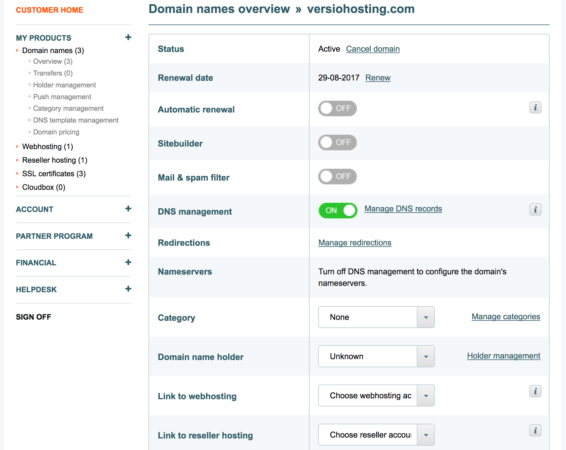 For demanding customers, Versio offers an extensive API that can be used to register manage domain names. Every action you can perform via our website, you can also perform via our API.