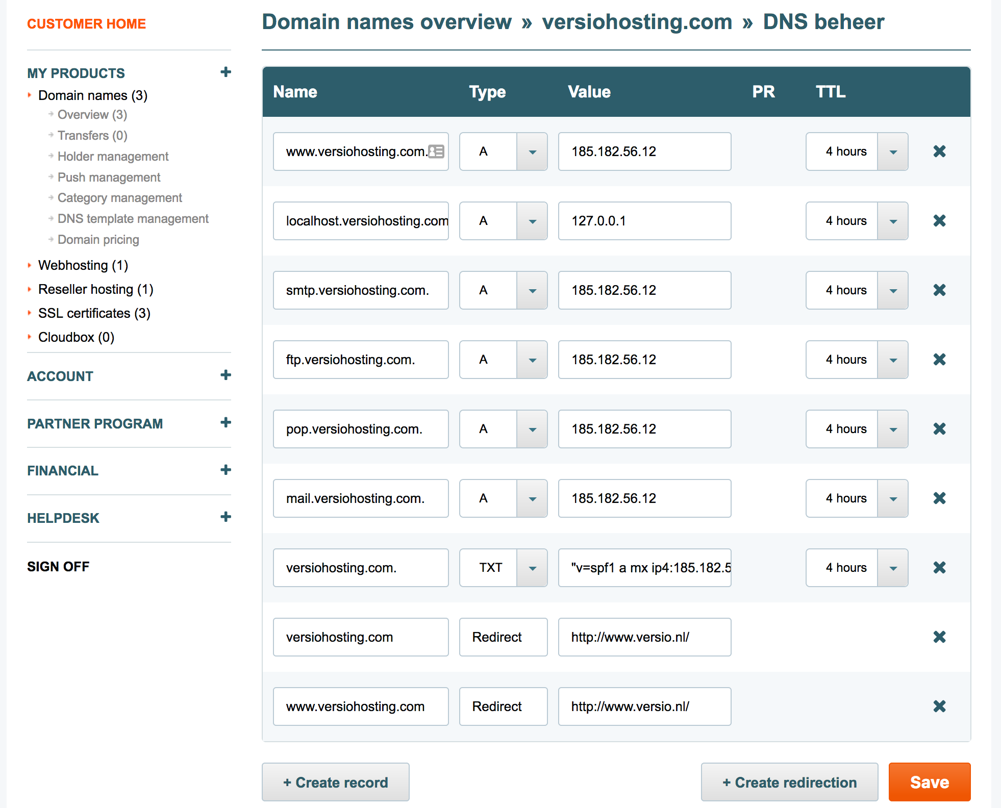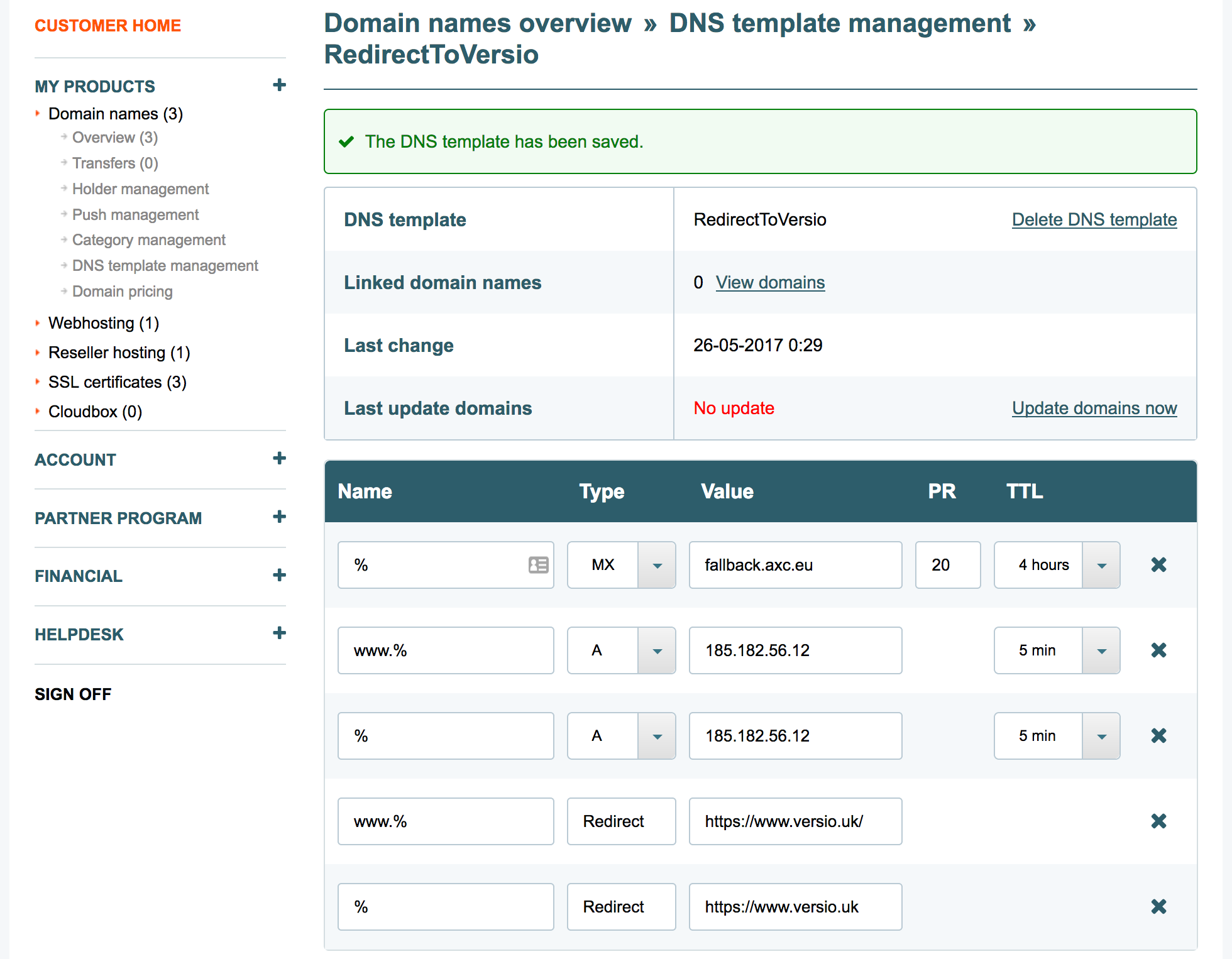 All domain names registered with Versio can use our free email fallback service. When your mail server is inaccessible, the emails will be delivered to the fallback servers of Versio so that they will not be lost.
